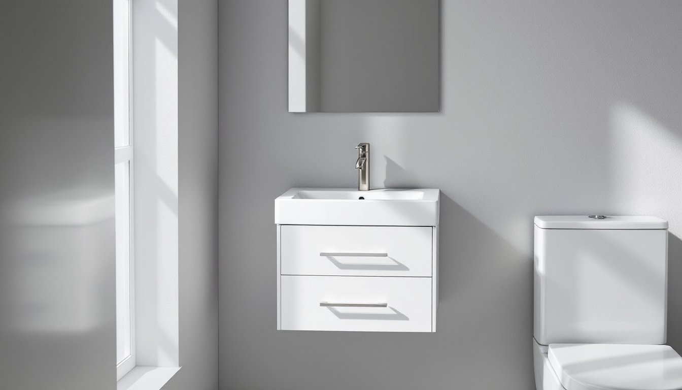 Tight bathroom layouts don’t mean settling for a pedestal sink or giving up storage altogether. A shallow bathroom vanity, typically